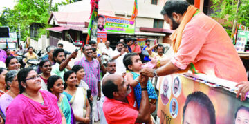 Local News ‘ഒരു താമര പൂവ് തരാം, പകരം താമരയ്ക്ക് ഒരു വോട്ടുതരൂ…’ വട്ടിയൂർക്കാവിനെ ശുദ്ധീകരിക്കാൻ താമരപ്പൂവുമായി യുവാക്കൾ
