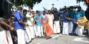 Thiruvananthapuram ചൈനയ്ക്കെതിരെ വ്യാപക പ്രതിഷേധം ചൈനീസ് ദേശീയപതാകയും പ്രസിഡന്റിന്റെ കോലവും കത്തിച്ചു