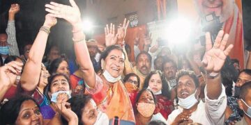 India ഹൈദരാബാദ് കോര്പറേഷന് തെരഞ്ഞെടുപ്പ്: ടിആര്എസും ബിജെപിയും തമ്മിലുള്ള അന്തരം വെറും പതിനായിരം വോട്ടുകള്, ഇനി ലക്ഷ്യം 2023