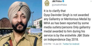 India ഭീകരര്ക്കൊപ്പം അറസ്റ്റിലായ ഡിവൈഎസ്പിക്ക് ധീരതയ്ക്കുള്ള പുരസ്കാരം ലഭിച്ചിട്ടുണ്ടെന്ന വാര്ത്ത വ്യാജം; സ്ഥിരീകരണവുമായി ജമ്മു കശ്മീര് പോലീസ്