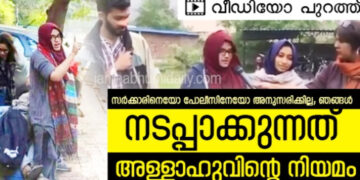 India സര്ക്കാരിനെയോ പോലീസിനേയോ അനുസരിക്കില്ല; ‘ഞങ്ങള് നടപ്പാക്കുന്നത് അള്ളാഹുവിന്റെ നിയമമെന്ന് അയിഷ റെന്നയും സംഘവും; മതതീവ്രവാദികള്ക്ക് കുടപിടിച്ച് മലയാള മാധ്യമങ്ങള് (വീഡിയോ)