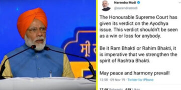 India അയോധ്യ വിധി: സമാധാനവും സംയമനവും പാലിക്കണം; ഐക്യം, സൗഹാര്ദ്ദം എന്നീ പാരമ്പര്യത്തിന് മുന്ഗണന നല്കണമെന്ന് പ്രധാനമന്ത്രി നരേന്ദ്രമോദി