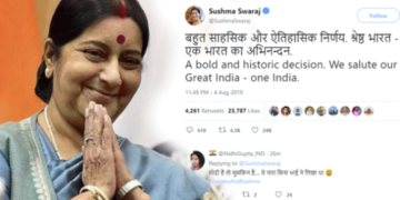 India കശ്മീരിന്റെ 370-ാം വകുപ്പ് നീക്കം ചെയ്ത നടപടി; ധീരവും ചരിത്രപരവുമായ തീരുമാനം; കേന്ദ്ര സര്ക്കാരിനെ അഭിനന്ദിച്ച് സുഷമ സ്വരാജ്