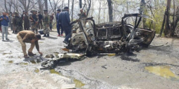 സിആര്പിഎഫ് വാഹന വ്യൂഹം കടന്നു പോകുന്നതിനിടെ സിലിണ്ടര് പൊട്ടിത്തെറിച്ചു
