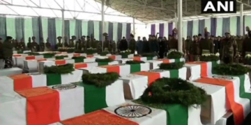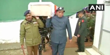 വീര ചരമം അടഞ്ഞ ജവാന്മാരുടെ മൃതദേഹങ്ങള് ചുമന്ന് രാജ്ന്ഥ് സിങ്ങും