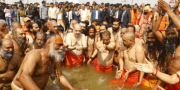 കുംഭമേള: ത്രിവേണി സംഗമത്തില് സ്നാനം ചെയ്ത് അമിത് ഷായും യോഗിയും