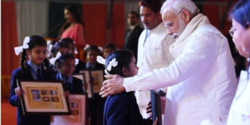 വൃന്ദാവനില് കുട്ടികള്ക്ക് ഉച്ചഭക്ഷണം വിളമ്പി പ്രധാനമന്ത്രി