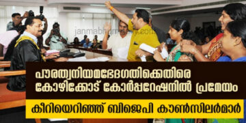 Kerala രാഷ്ട്രപതി ഒപ്പുവച്ച പൗരത്വ നിയമത്തിനെതിരെ കോഴിക്കോട് കോര്പ്പറേഷനില് പ്രമേയം; കീറിയെറിഞ്ഞ് ബിജെപി കൗണ്സിലര്മാര്; യോഗം ബഹിഷ്ക്കരിച്ചു