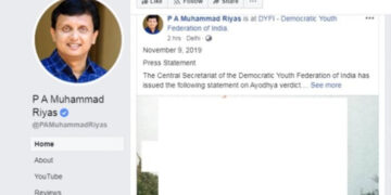 Kerala അയോധ്യ വിധി: സമാധാനം പുലരുന്നത് സഖാക്കള്ക്ക് സഹിക്കുന്നില്ല; വര്ഗീയത ആളിക്കത്തിക്കാന് ഡിവൈഎഫ്ഐ നേതാവ് മുഹമ്മദ് റിയാസ്; നിരോധിച്ച തര്ക്ക മന്ദിരത്തിന്റെ ദൃശ്യം പോസ്റ്റ് ചെയ്തു