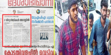 Kerala മാവോയിസ്റ്റ് ബന്ധം: അറസ്റ്റിലായ സിപിഎമ്മുകാര് പാര്ട്ടി പത്രത്തിന് ‘രണ്ട് വിദ്യാര്ത്ഥികള്’ മാത്രം; പ്രതികളുടെ പാര്ട്ടി ബന്ധം മറച്ചു പിടിച്ച് ദേശാഭിമാനി
