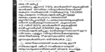 വിദ്യാര്ഥികള്ക്ക് സ്കോളര്ഷിപ്പെന്ന പേരില് വ്യാജ വാര്ത്ത