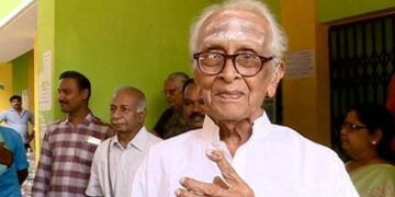 105-ാം വയസ്സിലും കെ അയ്യപ്പന്പിള്ള വോട്ടുചെയ്തു