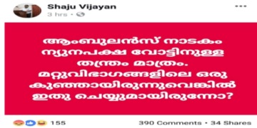 കുഞ്ഞിനെ ആംബുലന്സില് എത്തിച്ചത് ന്യൂനപക്ഷ വോട്ട് കിട്ടാനെന്ന് സഖാവിന്റെ ഫേസ്ബുക്ക് പോസ്റ്റ്