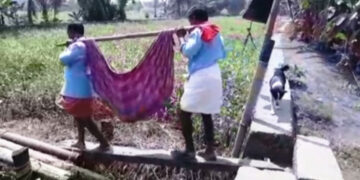 നടപ്പാലമില്ല, അമ്മയെ മക്കള് ആശുപത്രിയിലെത്തിച്ചത് തുണിയില് കിടത്തി ചുമന്ന്…