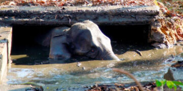 തേക്കടിയില് കാട്ടാന മാലിന്യക്കുഴിയില് വീണു