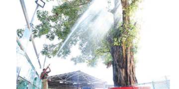 പതിനെട്ടാംപടിക്ക് മുന്നിലെ ആല്മരത്തിന് തീപിടിച്ചു