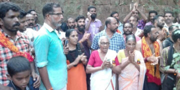 ബിന്ദുവിന്റെ വീടിന് മുമ്പില് നാമജപ പ്രതിഷേധം