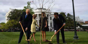 ട്രംപും മാക്രോണും ചേര്ന്ന് വൈറ്റ് ഹൗസിനു മുന്നില് നട്ട ഓക്ക് മരത്തിന്റെ തൈ കാണാതായി