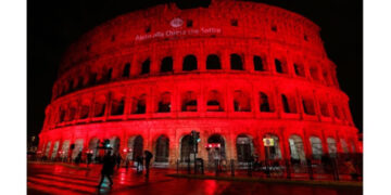 പാക്കിസ്ഥാനെതിരെ പ്രതിഷേധം കൊളോസിയം രക്തവര്ണമായി