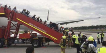 അടിയന്തര ലാന്ഡിങിനിടെ സിംഗപ്പൂര് എയര്ലൈന്സിന് തീപിടിച്ചു