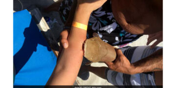 ചത്തിട്ടും വിട്ടില്ല, കൈയില് കടിച്ച് തൂങ്ങിയ സ്രാവുമായി യുവതി ആശുപത്രിയില്