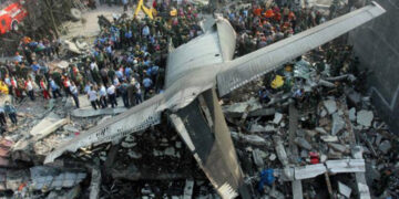 സൈനിക വിമാനം വീടിനു മുകളില് വീണ് മൂന്നു മരണം