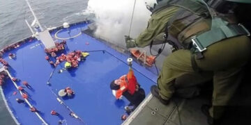 കപ്പലിലെ അഗ്നിബാധ: 49 പേരുമായി ആദ്യരക്ഷാബോട്ട് ബാരി തുറമുഖത്തെത്തി