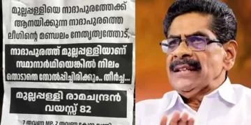 Kerala മുല്ലപ്പള്ളി രാമചന്ദ്രനെതിരെ നാദാപുരത്തും പോസ്റ്റര്: 82 വയസ്, നിലം തൊടാതെ തോല്പ്പിച്ചിരിക്കും