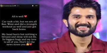 Entertainment തല വേദനിക്കുന്നുണ്ട്, ഒരു ബിരിയാണിയും ഉറക്കവുംകൊണ്ട് അതുമാറും’; അപകടത്തിൽ പ്രതികരിച്ച് നടൻ വിജയ് ദേവരകൊണ്ട