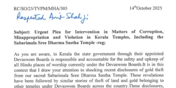 Kerala ശബരിമല സ്വർണ്ണക്കൊള്ള: കേന്ദ്ര ഏജൻസി അന്വേഷിക്കണം, ദേവസ്വം ബോർഡുകൾ സിഎജിയെക്കൊണ്ട് ഓഡിറ്റ് ചെയ്യിക്കണം; അമിത് ഷായോട് ബിജെപി