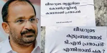 Kerala ടി. എന്. പ്രതാപന് യൂദാസ്; പോസ്റ്റര് പ്രതിഷേധവുമായി സേവ് കോണ്ഗ്രസുകാര്, കരുണാകരന്റെ കുടുംബത്തെ വഞ്ചിച്ചു